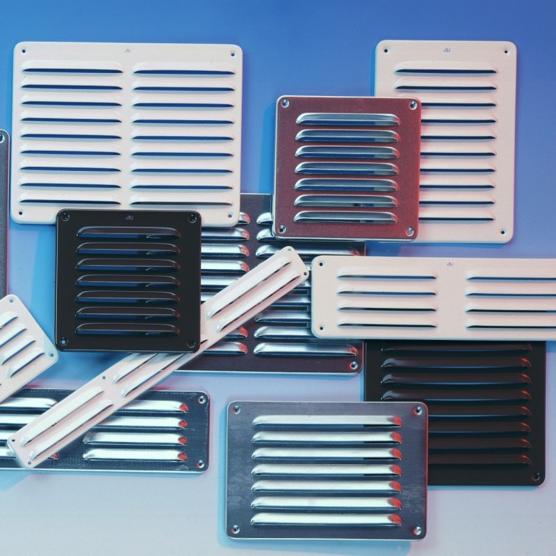 130 X 090 Rejilla Al. con Borde blanco y agujeros avellanados.
